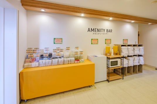 アメニティコーナーアメニティコーナー環境への配慮と使い捨てを減らすための取組みとして、客室にはアメニティを置かず、フロントにアメニティーコーナーを設置しています。歯ブラシやボディタオル、カミソリ等、必要なものを必要な分だけお選びください。
