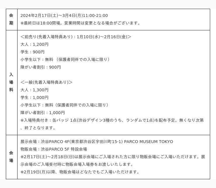※特別企画「コラボレーション作品」や一部作品の展示はございません