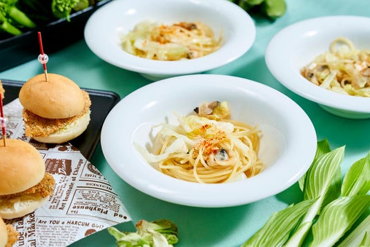 春の味覚である筍や山菜をはじめ、海老や鰹、鯛など色味も春らしさを感じる山海の食材を中心に、出汁やソースには九条ネギや抹茶など京都らしさを添えて、季節の彩りが豊かなシェフ自慢のバリエーションに富んだメニューを多数ご用意します。また、土日祝のディナータイムには、焼きたてのアップルパイをお席までワゴンサービスにてご提供します。