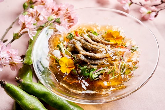 (ランチ)ワカサギのエスカベッシュ/とうもろこし豆腐/鯛の道明寺桜蒸し/鰻とサクラエビのおこわ/鶏もも肉と筍の揚げ出し仕立て/バジルソーセージとアスパラのジャーマンポテト/春キャベツとアサリのペペロンチーノ/煮穴子の雛ちらし寿司(平日限定)