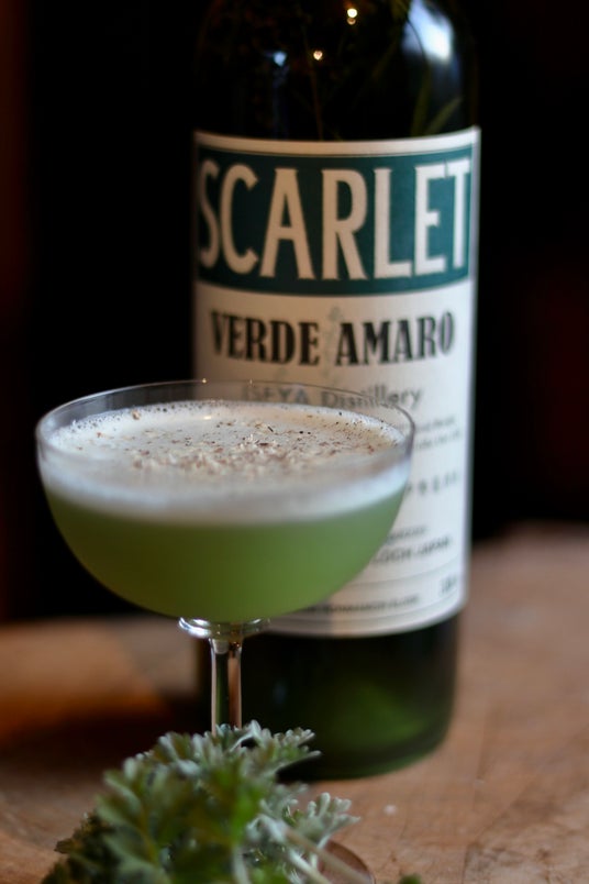 「スカーレット・ヴェルデアマーロ」は、新潟県・越後薬草蒸溜所のスピリッツをベースに、セージ、レモンバーム、フェンネル、ルバーブ、松の葉、桑の葉、タンポポの根、コゴミ、スイバ、ニガヨモギなど、畑で育った薬草を中心に30種類以上のボタニカルを使用して造られています。爽やかな草原の香りに、飽きのこない甘味と苦味。長く続く余韻に、最後はニガヨモギがふんわりと心地良く香る一本です。
