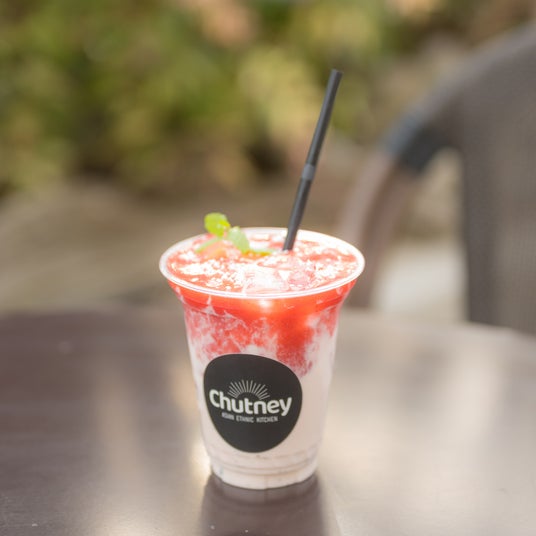 ¥660(税込)/5F CHUTNEYフレッシュほこたいちごのラッシーフレッシュないちごをふんだんに使用!濃厚な中にもさわやかな飲み心地でスパイスの効いた料理と相性抜群!