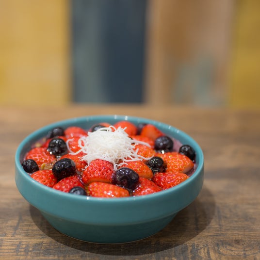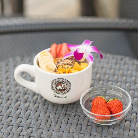 ¥1,710(税込)/3F ISLAND VINTAGE COFFEEほこたいちごのカカオモアナボウルアサイーの上に、自家製アーモンドバターやカカオニプなど体が喜ぶ素材をON。いちご3個のトッピング付き。