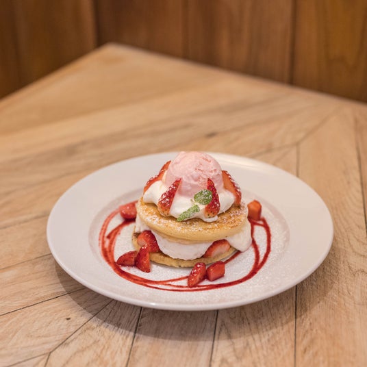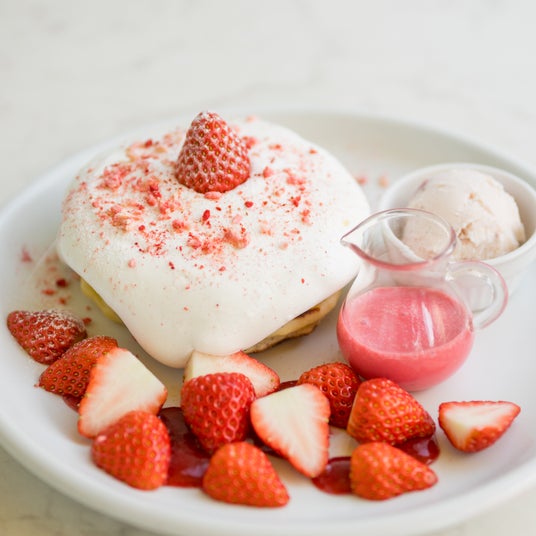 鉾田いちごいっぱいホワイトクリームパンケーキ ¥1,925(税込)/横浜ベイクォーター2F Butter