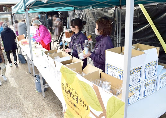 「ゆふいん完熟かぼす祭り」は大分県の特産品であるかぼすの中でも、11月以降にしか味わうことのできない希少な黄色の完熟かぼすの認知向上を図ることを目的に、由布院温泉観光協会、同旅館組合、由布市まちづくり観光局、JAおおいた、JA全農おおいたの5団体により2023年12月2日(土)開催されました。湯布院町内では、完熟かぼすを搾った豚汁の試食や完熟かぼすの無料配布が行われたほか、完熟かぼすを添えた料理などが販売されました。