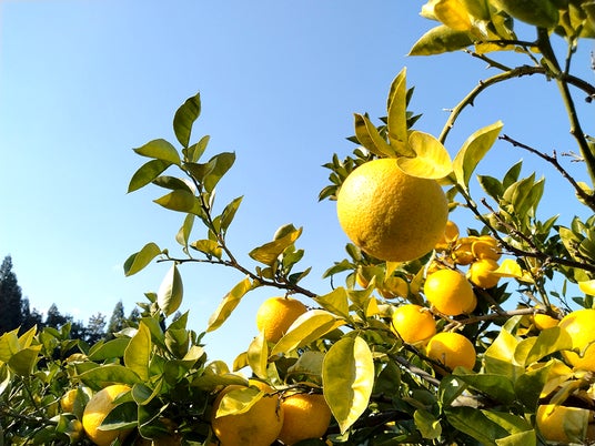 緑色ではなく黄色の果汁たっぷりの完熟かぼすをPR