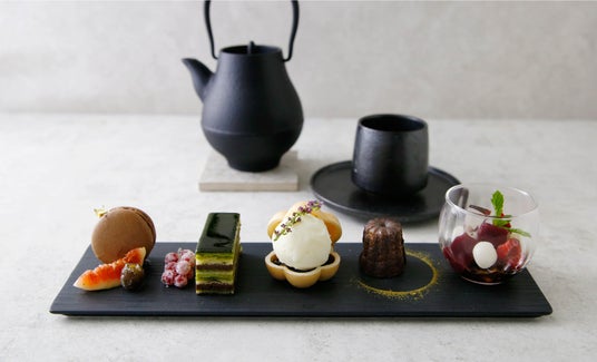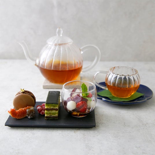 洋菓子に和のエッセンス入れた、凸凹茶房オリジナルのスイーツたちとお茶のペアリングを楽しむ、ちょっと贅沢なティーセット。