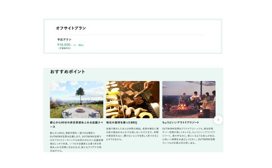 今回の改新で、オフサイト専用の料金プラン『オフサイトプラン』を追加。施設ホームページに飛ばずとも、すぐに料金を確認できるようになりました。
