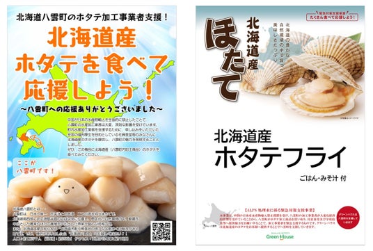 株式会社グリーンハウスは、北海道八雲町が同町のホタテ加工商品を買い取り、社員食堂や学生食堂での提供につなげるホタテ緊急対策支援事業に協力します。