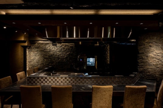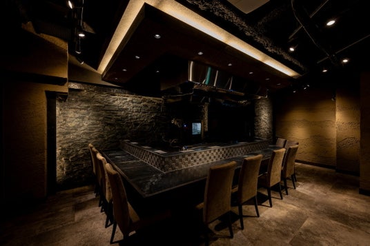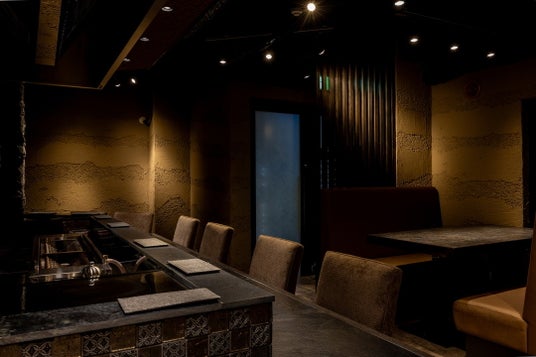石を使用した黒とグレーが基調のシックな店内は、落ち着く大人の空間を演出します。