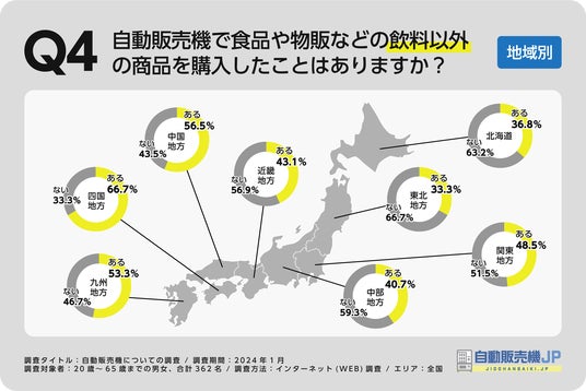 特に四国地方での購入経験が最も高く(66.7%)、東北地方で最も低い結果(33.3%)となりました。