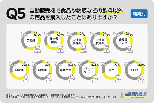 特に自営業者(70.6%)と学生(70%)の購入経験率が高く、自由業(30%)の購入経験率が最も低いことが明らかになりました。