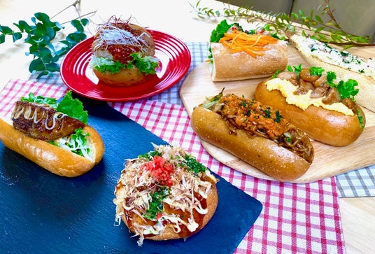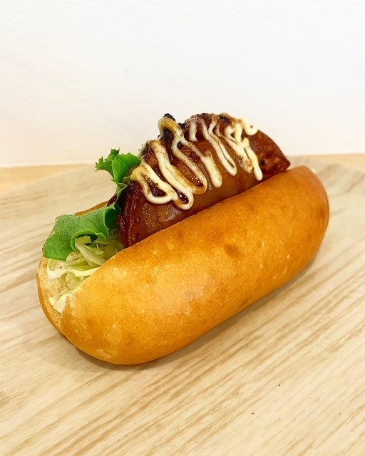 写真は「餃子ドッグ」。子供たちにも大人気のパンが盛りだくさん!