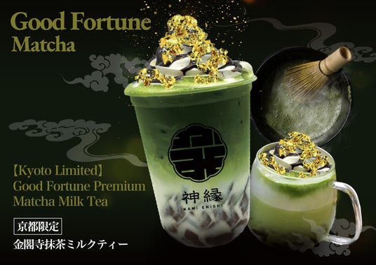 また京都四条河原町店では【京都店限定】金閣寺抹茶ミルクティー を販売しております。京都宇治市のブランド抹茶"抹濃"を使用。上から金沢産金箔を贅沢にのせ世界遺産京都の『金閣寺』をイメージした、他では味わえないプレミアムな1杯です。