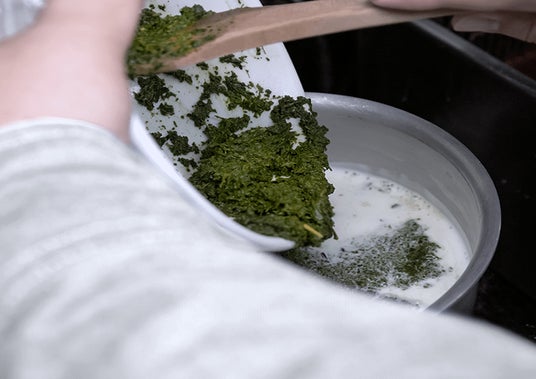 渋みを生かすために研究を重ねた神縁ロイヤルミルクティー製法。沸騰させないようにじっくりと火を通すことで、口に含んだ時の濃厚な風味と美味しさを保っています。