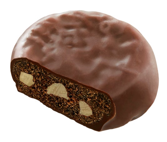 ・ココア生地にチョコチップとクラッシュしたアメリカ産アーモンドを入れ、ミルクチョコレートでコーティング