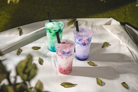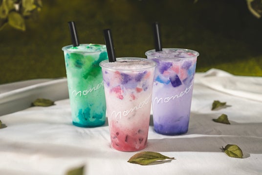 「モネ 連作の情景」でも焦点があてられている、季節の移ろいを捉えた「連作」に因んで3色の連作ドリンクをつくりました。