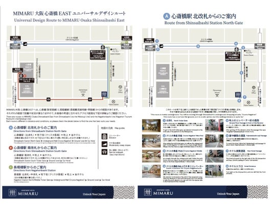 MIMARUでは、最寄り駅からホテルまでのルートを障がいのある方の視点で確認したアクセスマップや、車いすを利用される方の目線で必要とされる、共用設備と客室(一部タイプ)の詳細情報を記載した資料を作成し、HPへの掲載を順次進めています。