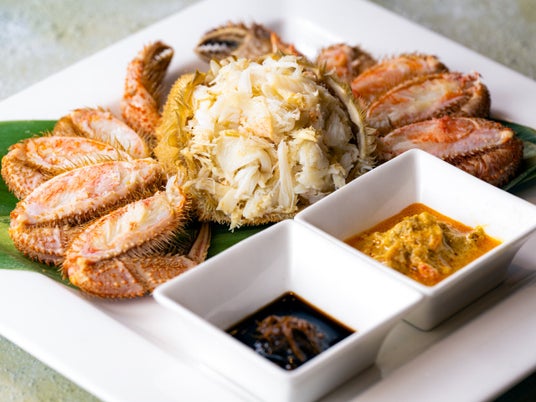 北海道産毛ガニの一匹蒸し 特製生姜黒酢で