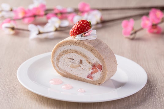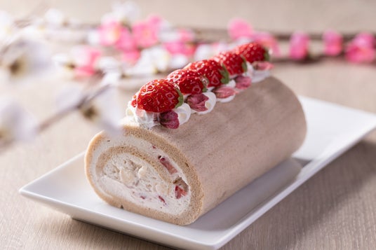 苺と桜のピューレが入ったクリームの中には、わらび餅をアクセントに加え、生地にはタピオカ粉を使用し、もちもち食感に仕上げた、ほんのり桜の香りを感じられるロールケーキです。