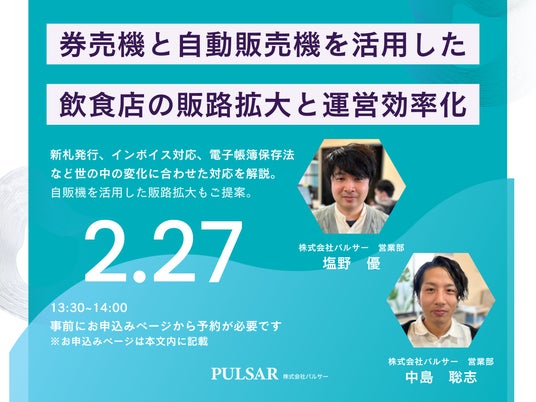 券売機、自動販売機、セルフレジ、無人店舗などを展開している株式会社パルサーより、券売機のメリット・デメリットが分かる説明会を開催。