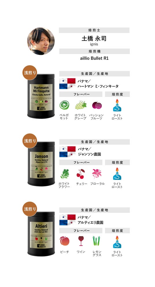 この機会にぜひ、パナマの最高品質のロットと土橋さんの焙煎による、ここにしかないコーヒーを体感してください。<商品詳細>