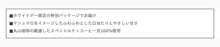 株式会社丸山珈琲(長野県北佐久郡軽井沢町軽井沢 代表:丸山健太郎)は、2月15日(木)よりホワイトデー限定の「マシュマロブレンド(中煎り)」を販売いたします。