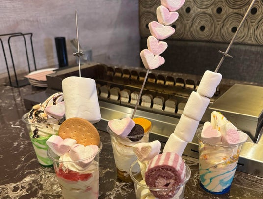 マシュマロはそのままお召し上がりいただけるのはもちろん、回転串焼きロースターで焼いたり、ソフトクリームやソースをトッピングしてオリジナルのスイーツを作ることも可能です。常設しているスイーツコーナーもイベント期間中は拡充予定ですので、いつもよりさらに充実したニコルのスイーツをお楽しみいただけます。
