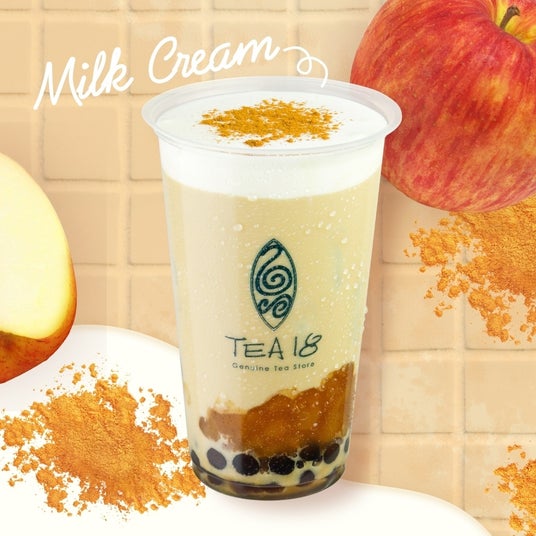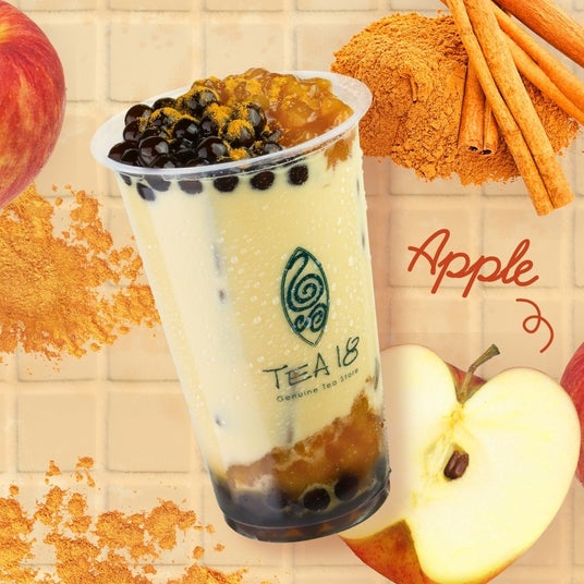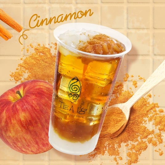日月潭紅茶を使用したTEA18オリジナル「TEA18ミルクティー」に、シナモンの風味豊かな林檎果肉とセイロンシナモンパウダーをトッピング!