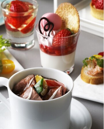 そして今回のスイーツはファン待望のいちご!この時期だからこそ味わえるジューシーで甘酸っぱい上質ないちごをつかい、春の訪れを感じる彩りと、5種類のスイーツをそれぞれ異なる美味しさでお届けします。