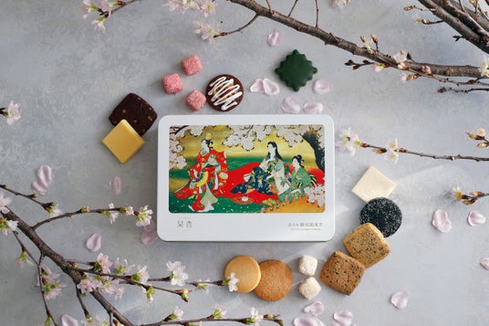 桜を愛でる優美な姿を写し取ったデザイン缶には、抹茶やごま、きなこなどの和素材をはじめとし、紅茶やココアなど味わい豊かな12種類のフレーバーをぎっしりと詰め合わせました。気品あふれるデザインは、お世話になった方に感謝を伝える贈り物や、春のお祝い行事の一品にもぴったりです。描かれた満開の桜とともに、心豊かなひとときをお過ごしください。