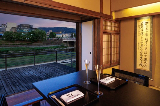 三条大橋からほど近くの鴨川沿いに佇む京料理 箔。