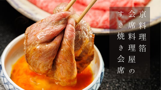 京料理 箔自慢の季節の会席料理に加え、料理長 特製の割下ですき焼きをお召し上がり頂けるコースの販売を開始致しました。すき焼きはお客様の目の前でスタッフがお作りし、絶妙の食べ頃にてご提供。いつもの会席とは違ったライブ感もお楽しみくださいませ。