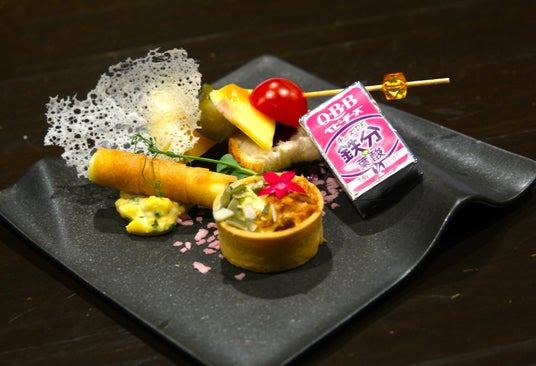 ウェルカムベイビーチーズケーキ「ウェルカムベイビーチーズケーキ」QBBベビーチーズ「おいしく健康プラスベビーチーズチーズDE鉄分」・チーズデザートオレンジショコラを使用した身体も心も温まるホットモクテル。