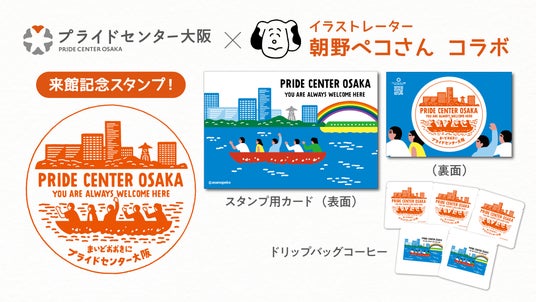 「LGBTQ等の性的マイノリティとその家族、アライの尊厳と権利を守り、誰ひとり取り残さない社会の実現をめざす」ことをミッションにしている認定NPO法人虹色ダイバーシティ(所在地:大阪市北区、理事長:村木 真紀)は、大阪の天満橋にある常設LGBTQセンター「プライドセンター大阪」と人気のイラストレーター朝野ペコさんとのコラボレーション企画として、プライドセンター大阪来館記念スタンプを作成したことをお知らせいたします。来館記念スタンプとスタンプ用カードのデザインは、書籍、雑誌、広告にとどまらず映画でのイラストも人気を集めるイラストレーター朝野ペコさんによる描き下ろしです。また、同様のイラストを用いたドリップバッグコーヒーも2月8日(木)より、プライドセンター大阪にて発売を開始いたします。