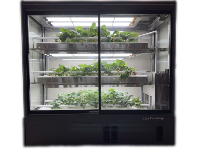 オカムラのブースにて、季節を問わずいちごを栽培できる、ショーケース型の植物工場「City Farming」が設置されます。