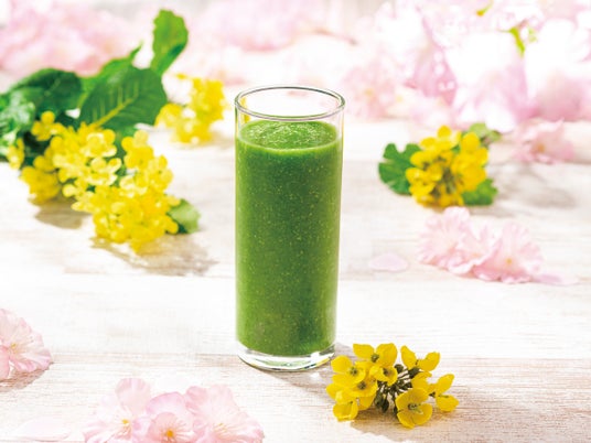 りんごの甘さと菜の花の風味が相性抜群のすっきりとした味のスムージー