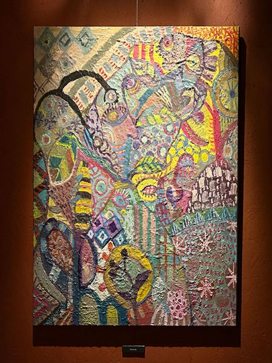 そんな暗い今の時代だからこそ、華やかで、色彩豊かな絵から、沈んだようにも見える、モノクロの絵まで、ひたすら自由で『ええじゃないか』という想いで、人々の心に寄り添うテーマを設けた。」