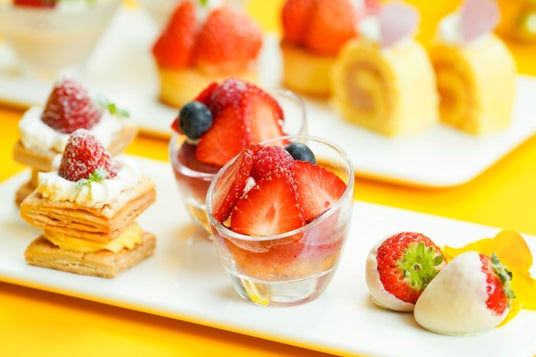 スイーツは、さくさく且つしっとりしたタルトといちご、クリームの相性が抜群の「いちごのタルト」、ラズベリーといちご、カシスのシロップに漬け込んだブリオッシュにフレッシュのいちごを合わせた「サバランフリュイルージュ」、いちご果汁をたっぷり使用したクリーミーな「いちごのプリン」などをラインナップ。