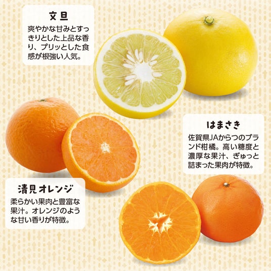 ●原産地 :清見=愛媛県 はまさき=佐賀県 文旦=高知県又は愛媛県