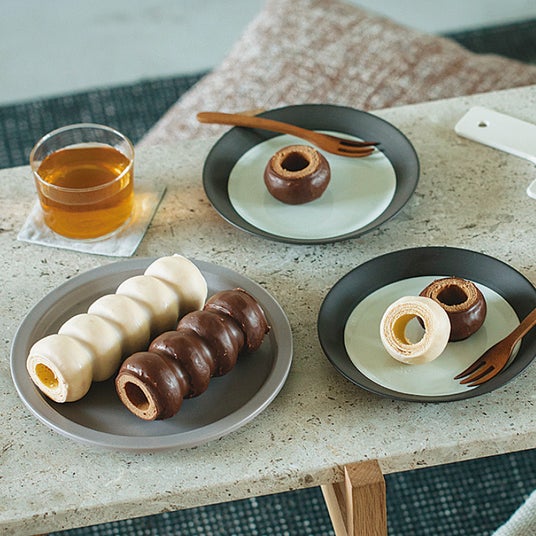よりしっとりとうまみを感じることを目指して、試行錯誤で生まれた6個のバウムクーヘンが連なるかたち。