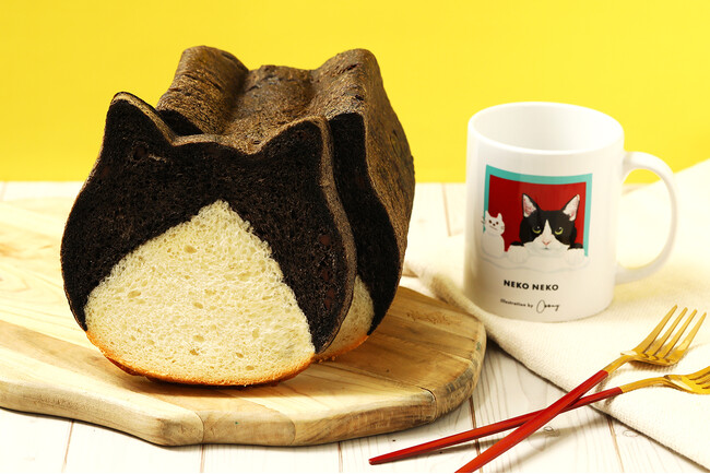 ように焼き上げました。「ねこねこ食パン ハチワレ」とオリジナルのマグカップのセット。ハチワレ