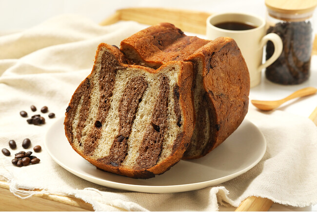 るコーヒー風味の生地と、ほんのり甘いチョコチップ入りのチョコ生地で2種類の味わいをお楽しみ