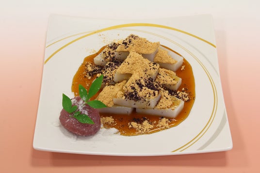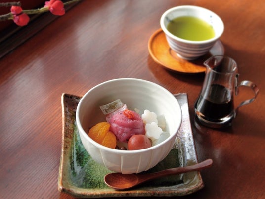 船橋屋の看板商品であるくず餅から梅紫蘇のお味が船橋屋亀戸天神前本店イートインにて登場。きな粉に梅紫蘇をまぶし、甘塩っぱさがクセになる梅餡を添えたくず餅です。この商品のために調合された黄金蜜をたっぷりかければ、甘味と塩気が生み出す絶妙な味わいが口いっぱいに広がります。