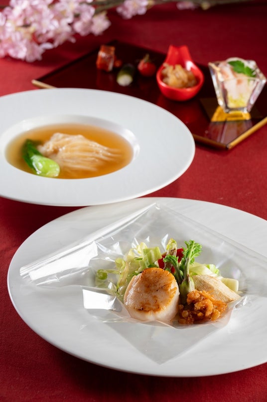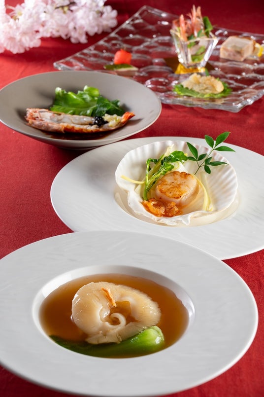 「中国料理 皇家龍鳳」では、ふかひれや北京ダックなどを味わえる人気のコースに春の食材を盛り込んだ豪華なメニューが登場。