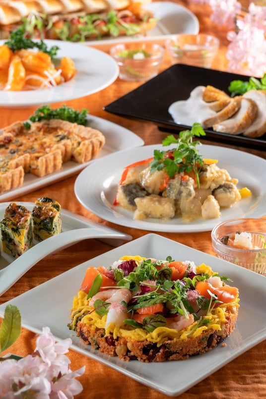 「ダイニング フェリオ」では「バケットサンドイッチ」や「クスクスのサラダ ちらし寿司風」など、お花見をイメージしたメニューを取り揃えたビュッフェをお愉しみください。