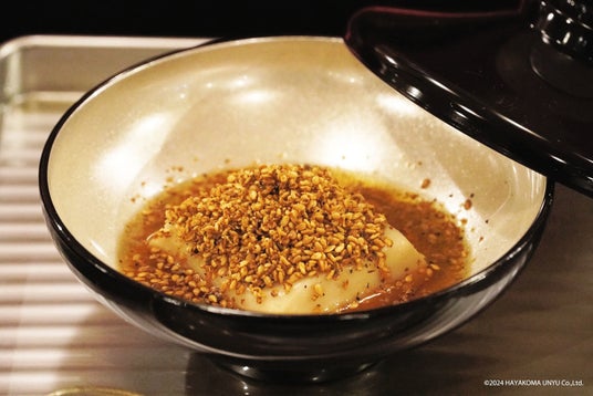 温かい自家製胡麻豆腐丹精込めて練り上げたこだわりの自家製胡麻豆腐!温かい醤油出汁と炒り胡麻が香る極上の一品です。