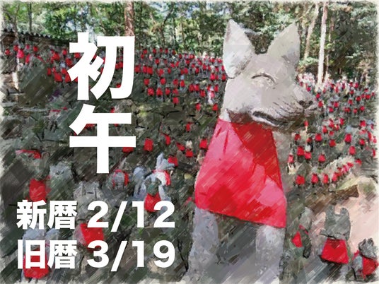 2月12日「初午いなりの日」…初午(はつうま)とは立春のあと、最初の午の日のことで、五穀豊穣の神様が稲荷大社に鎮座された日とされ、【稲荷】(全国の)では初午祭が行われます。豊川稲荷では、 旧暦初午3月19日に【初午恒規】(はつうまごうき)が厳修され、境内には行灯を立てられます。商売繁盛(五穀豊穣)を願い毎年初午詣りとして多くの参拝者が御祈祷に参詣されます。初午祭では、神のお使いとされる狐に好物の油揚げや油揚げを使ったいなり寿司が供え物として献上られ、五穀豊穣、商売繁盛、無病息災、家内安全などが願われます。また、初午の日は一年で最も運気が上がる日と云われ、その日に合わせて、様々な幸いを願いながら食べるのが「初午いなり」です。