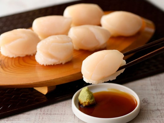3店舗でご提供するにぎり寿司では、ミネラル豊富な三陸で育った甘みと旨味がぎゅっとつまった肉厚な宮城県産「ほたて」が登場!