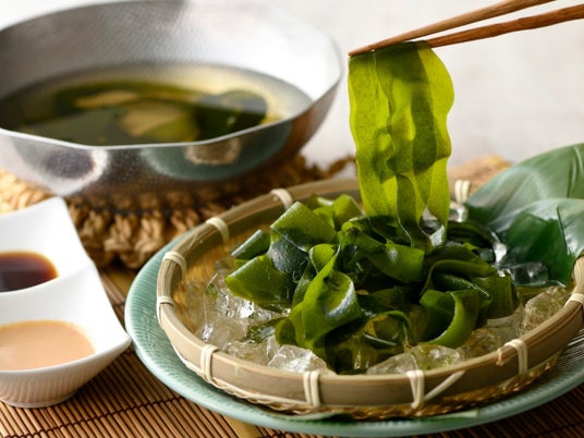 肉厚で弾力が強く磯の香りを感じる豊かな風味の岩手県産「三陸わかめ」をさっと茹でていただく、ディナー限定『三陸わかめのしゃぶしゃぶ』。
